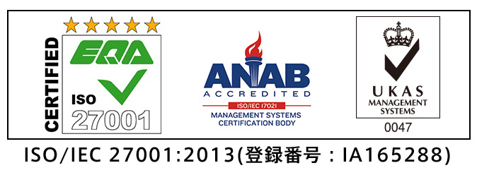 | 国際規格 | ISO/IEC 27001:2013(登録番号:IA165288)取得 |